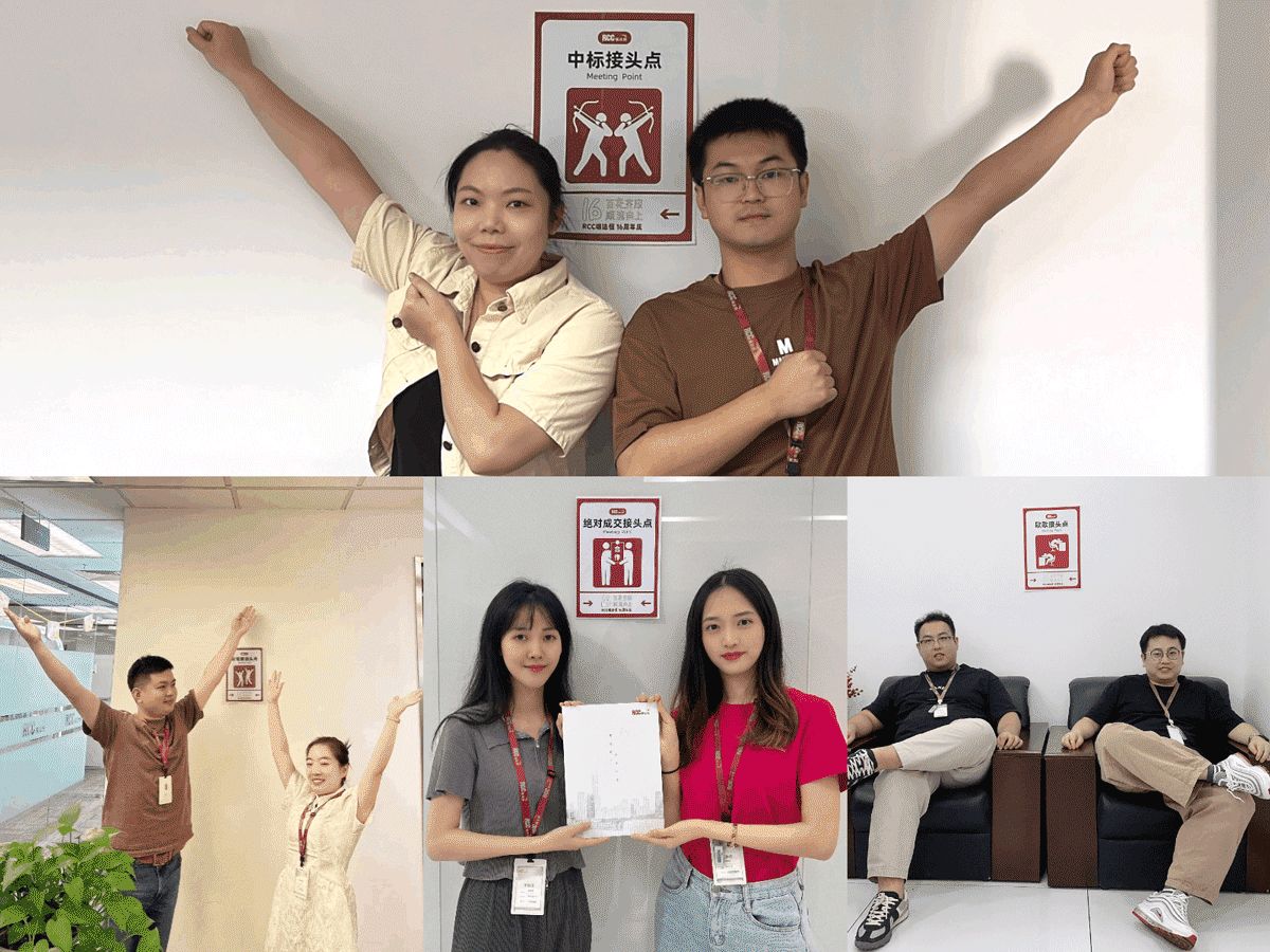 ? ? ? 辦公室內(nèi)的搭子接頭點(diǎn)成為了RCC人的熱門打卡地,不同部門的伙伴一起花式復(fù)刻海報(bào)姿勢(shì),留下16周年限定合照。